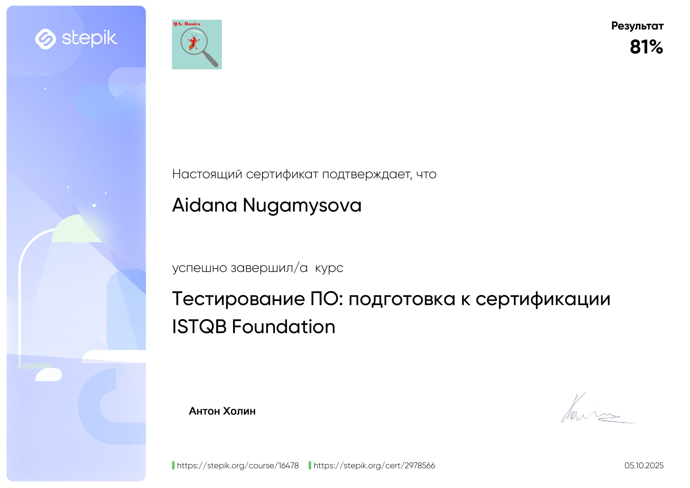 Мои полученные сертификаты